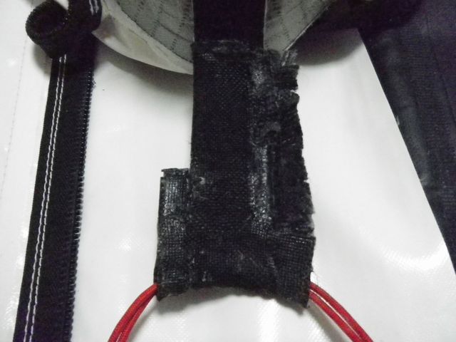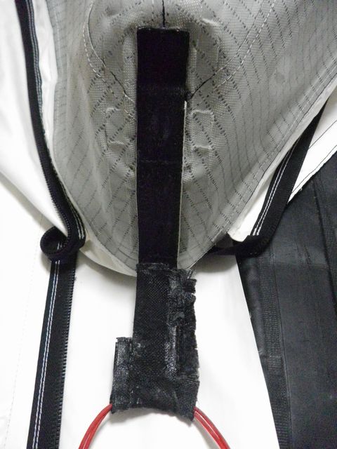 船体布にテンションを掛ける部分は、数回の使用で黒い布が剥がれ落ちました。
