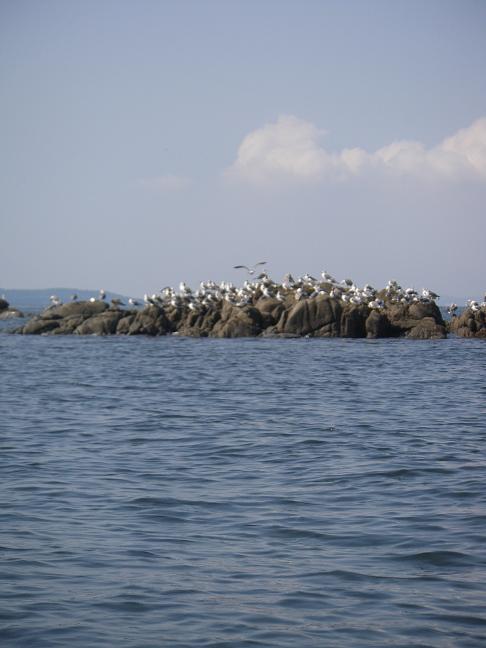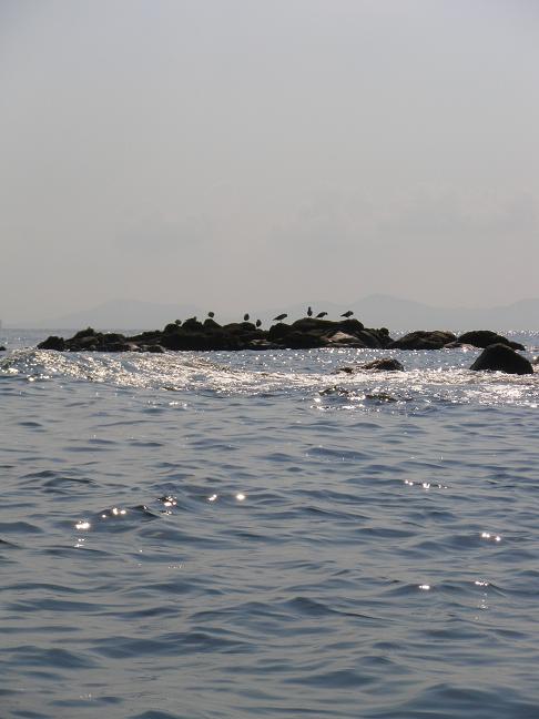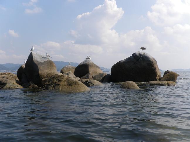 島の南側の岩礁は、海鳥達の休憩場所です。
