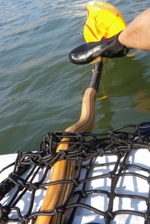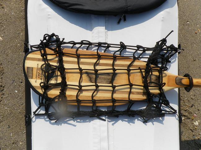 いつもはコーミングとパドルを一緒に握り再乗艇するのですが、それが上手くいかない場合にフネにパドルが固定できれば楽だろうなと・・・