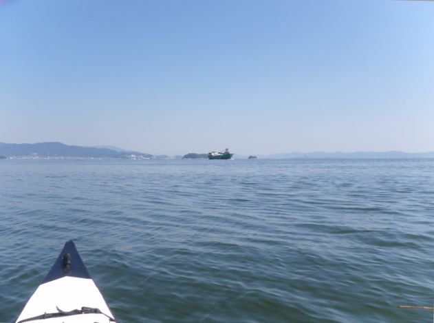 復路で気づいたのですが、大きな船の航路を斜めに横断してしまいました。