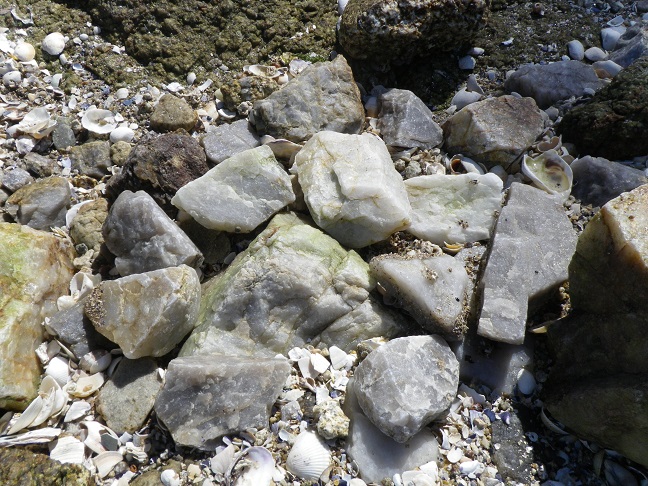 この海岸には、白色や灰白色の透明感ある石が沢山認められました。