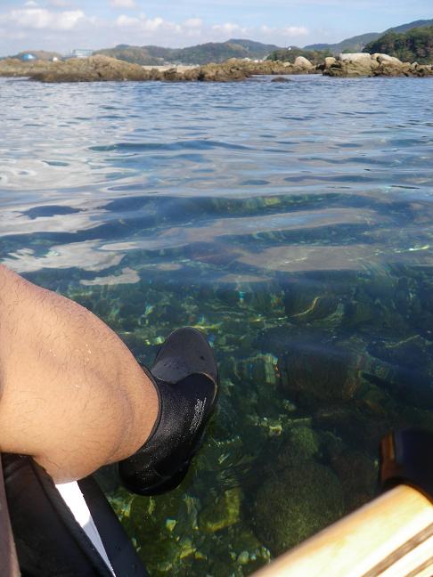 沖ノ島に到着すると、海水の透明度が上がり、海底が覗けてきました。