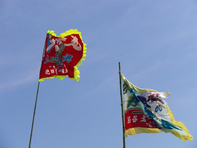 潮干狩り場には、大漁旗が気持ち良さそうになびいています。