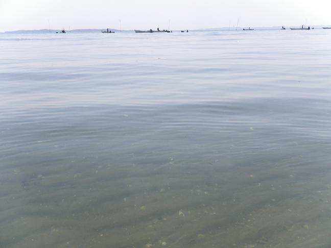 スーと船を滑り入れるとボラが跳ねたり、フグや小魚が沢山見れました。