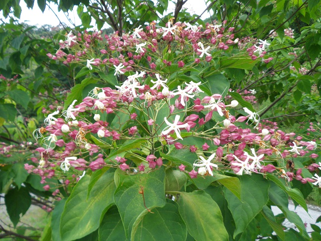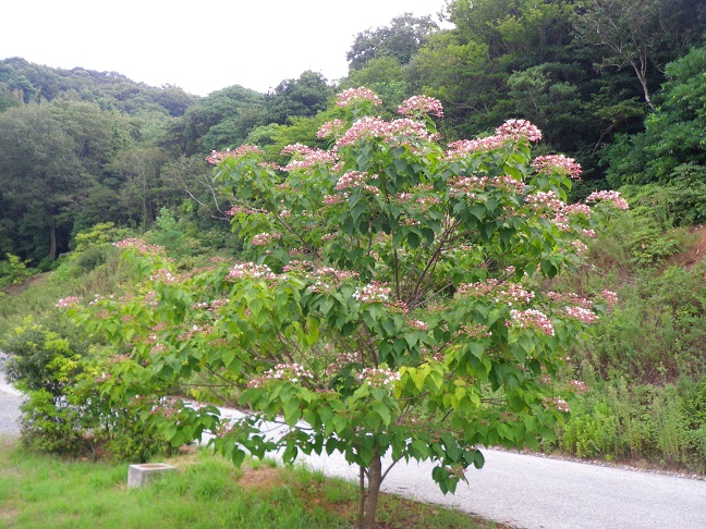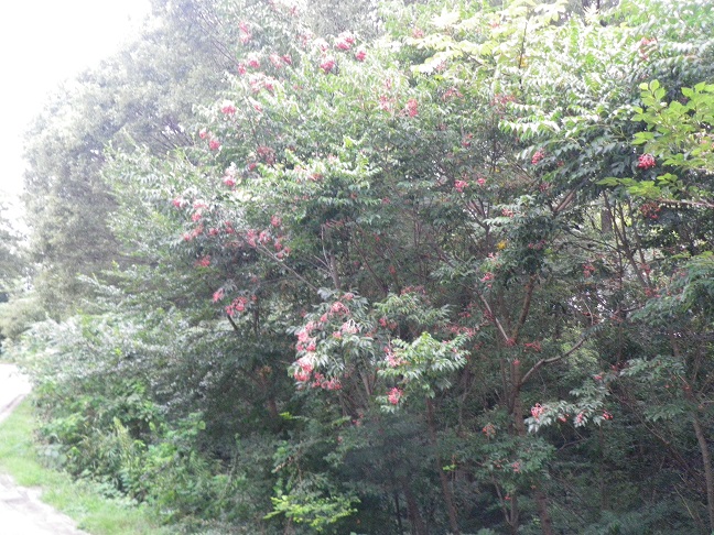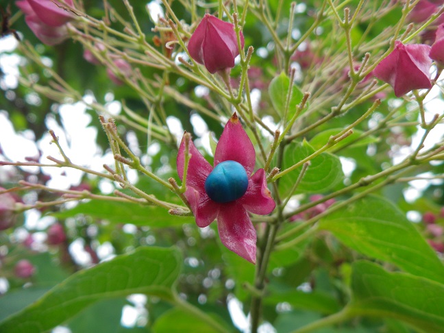 ※クサギは赤色の萼が星形に開き、中の青黒色の果実が見えだしていました。