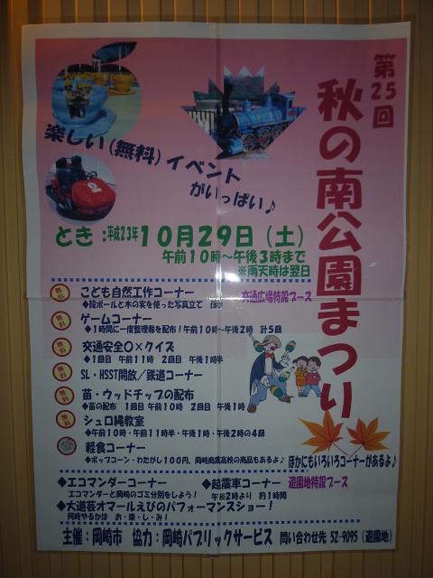 10月29日(土)に、秋の南公園まつりが催されるようです。
