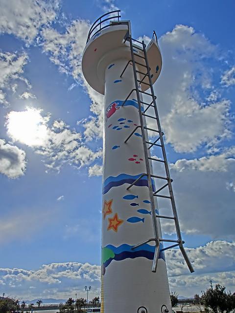 絵柄がステキな小さな灯台が、陽光に照らされ青空に映えていました。