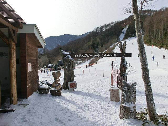 ここも物凄い混雑ぶりでしたが、スノーシューの散歩コースがあったことを思い出し、もし楽しく滑れない時はそこを散策してみようと思い、上がってみることにしました。