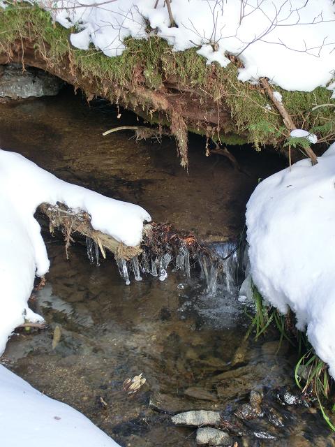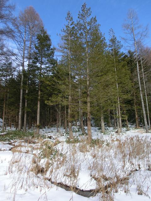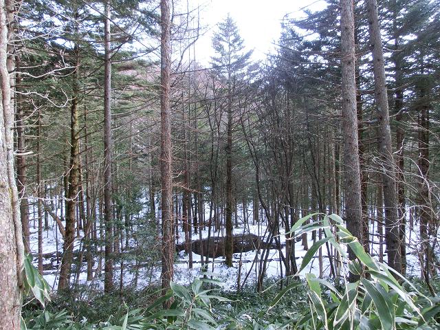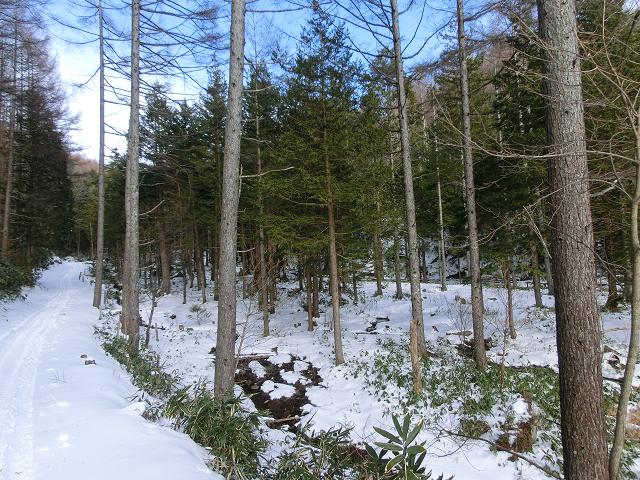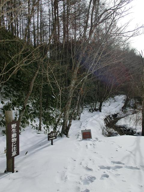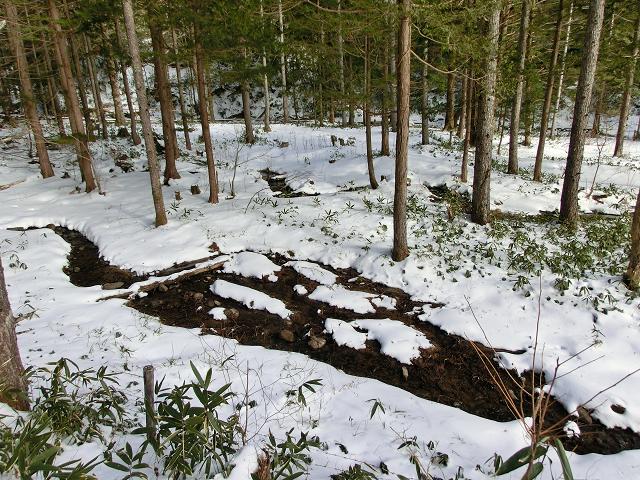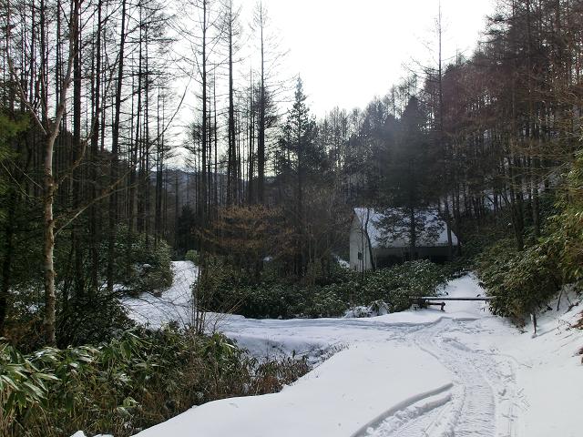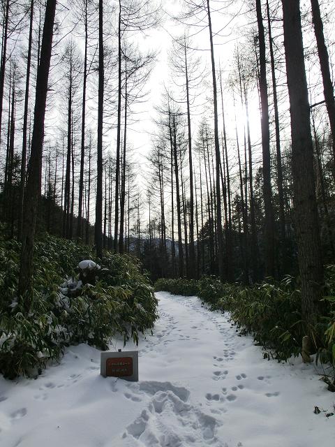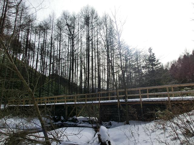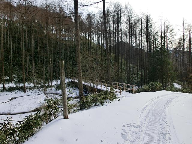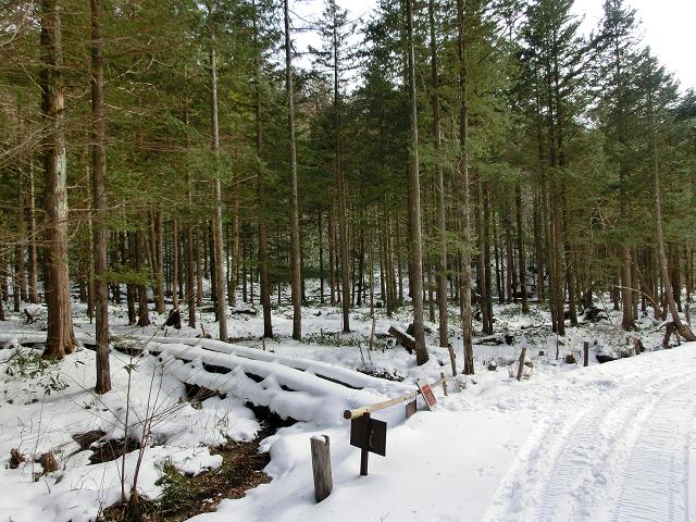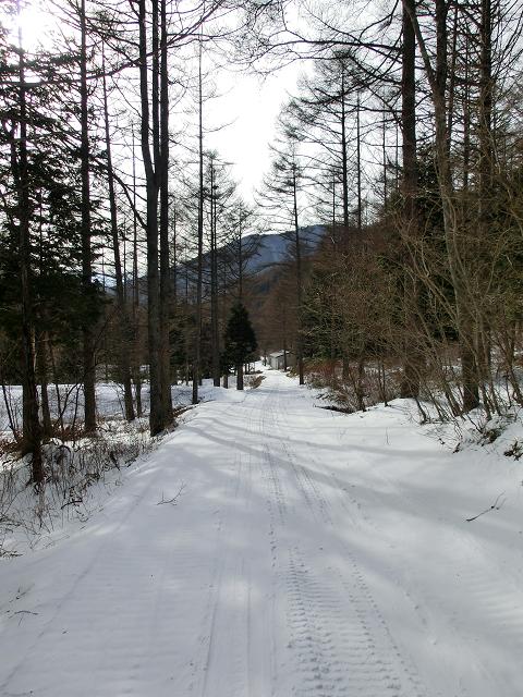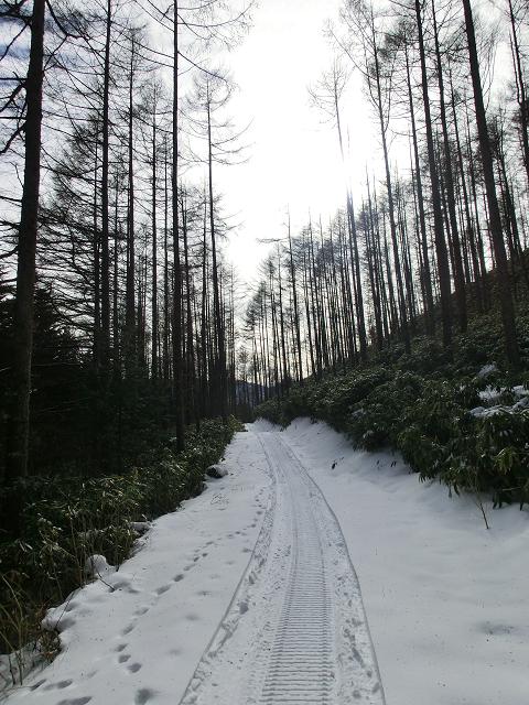 いわなの森コースには、デッキロードが通っていますが、積雪時は使用しないようにとのことでしたので、森の脇を通る林道を通るだけでした。(中写)