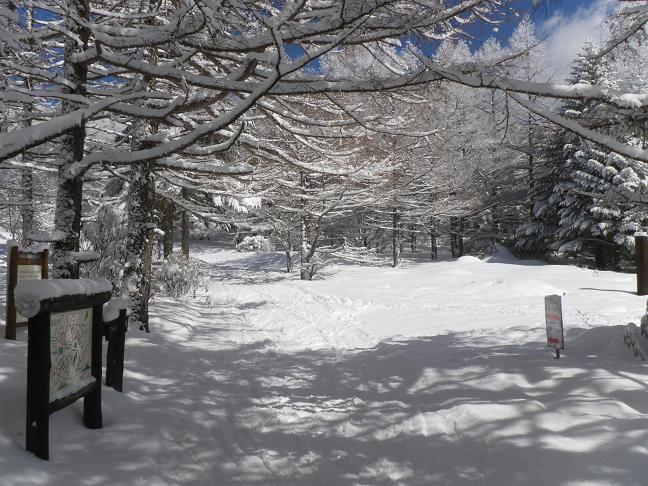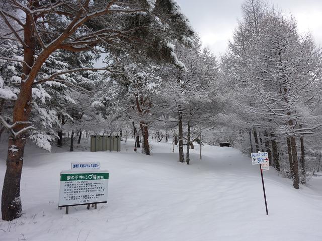 ラビットコースとフォレストコースの合流地点に駐車し、ゲレンデへ行く前に夢の平キャンプ場に行ってみました。