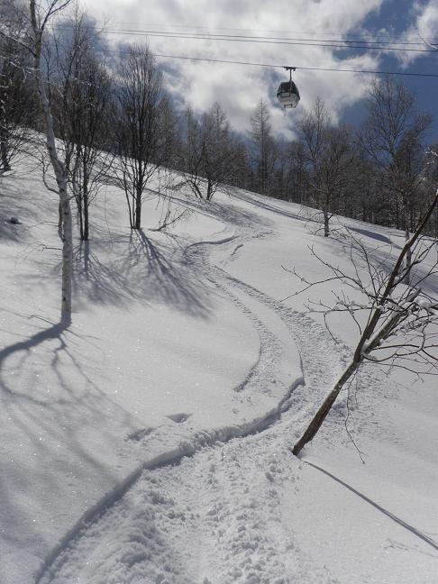 シュプールは沢山刻まれていましたが、まだまだまっさらな面は残っていましたので、繰り返し何度もここを滑りました。