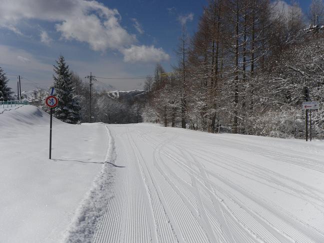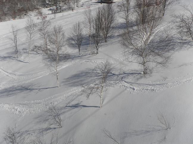 だんだんシュプールの数が増え、雪も少しだけ重さが出てきました。(右写)