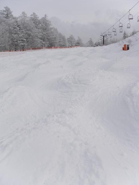 左1/3はポール練習コース、真ん中1/3がコブコース、右1/3が非圧雪コースとなっていました。