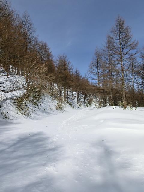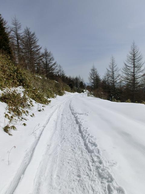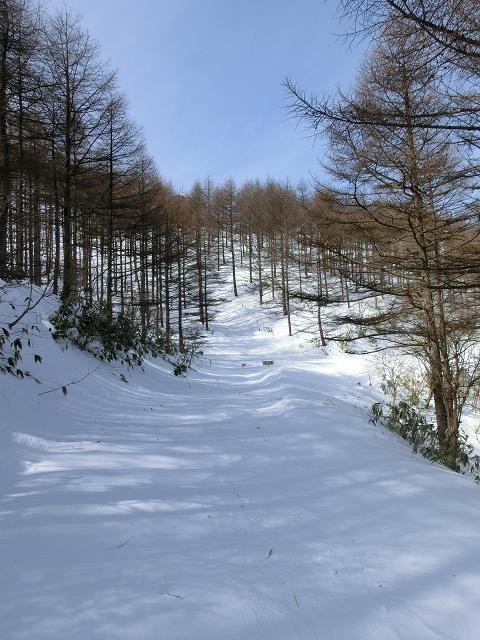 ※パノラマコースはまだ続いていましたが、スキーで下りやすそうな場所(右写)で林道へ出ました。