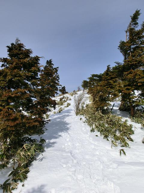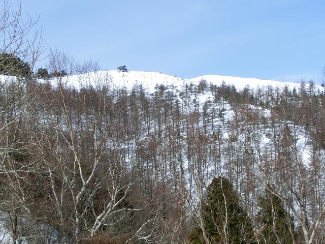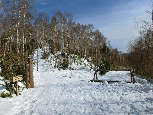 萬岳荘横の緩斜面を、500m程進むと稜線に出ます。