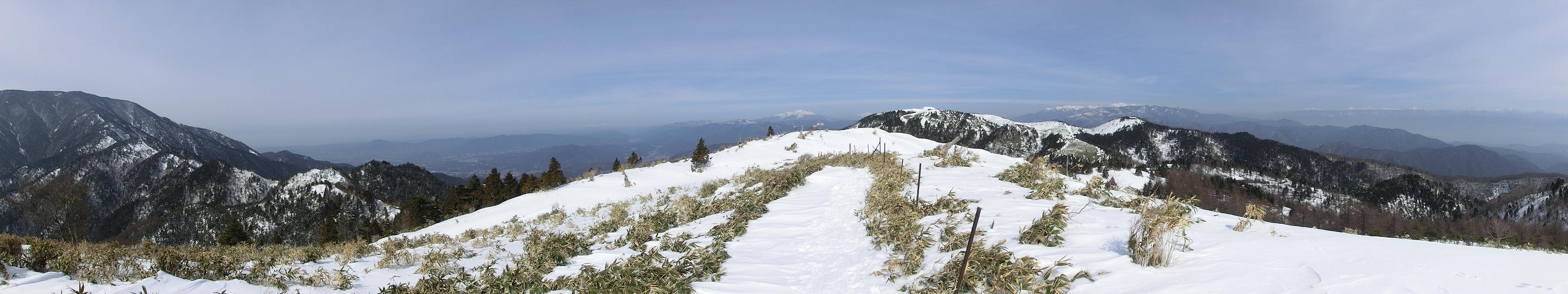 尾根道の両側に、パノラマが広がります。