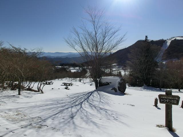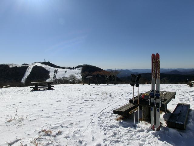 斜面のトップには、茶臼山頂へ続くトレイルの入口があり、辺りはテーブルやベンチが幾つもある、くつろぎ空間となっておりました。(右写)