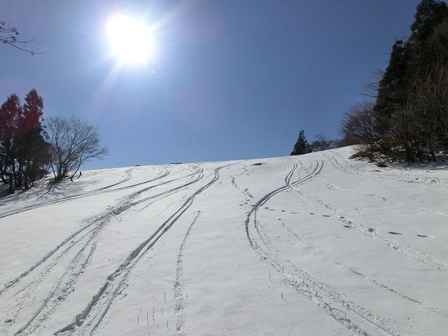 車道は、アスファルトが露出している箇所がありますが、帰りはこれに助けられて快適に滑り降りてくる事が出来ました。(^^ゞ