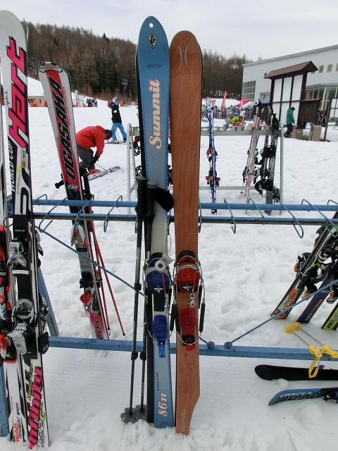 午前中は、上のゲレンデの荒れ具合が面白くてK2 summit 8611で細かく遊び、午後は、下のグサグサゲレンデをScottyBob HeadRushで大きく走って遊び、3時前に切り上げました。