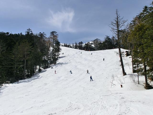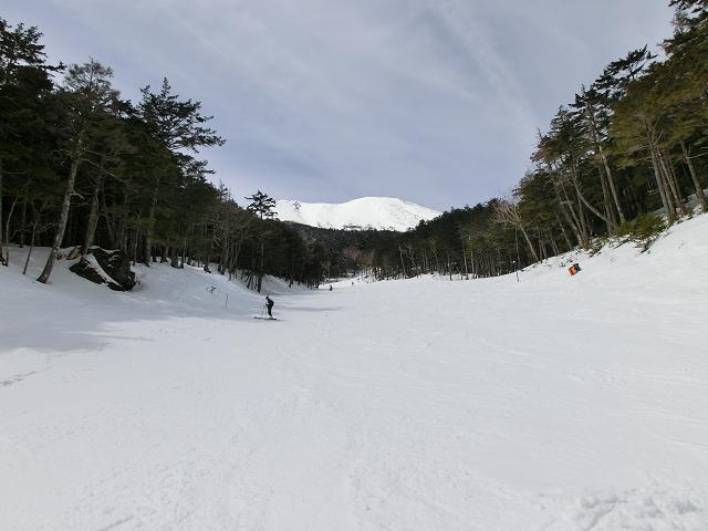 ゲレンデトップからスカイハイコース越しに、乗鞍岳がきれいに見えました。