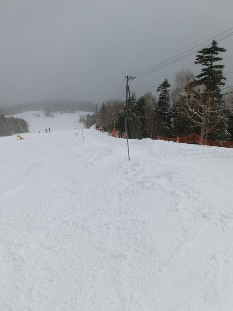 ゲレンデは、アイスの上に数cmのパウダーが乗るという状況でした。