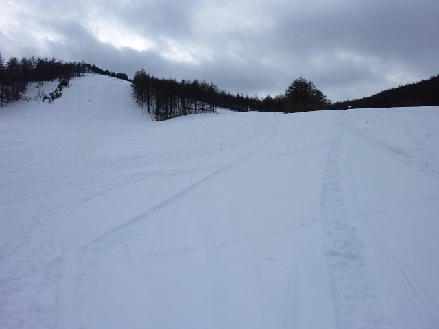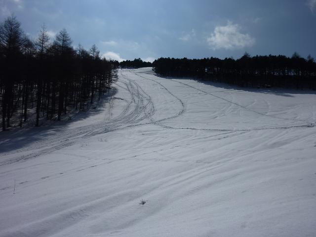 ゲレンデ跡は、スノーモービルの轍でズタズタでした。(中写)