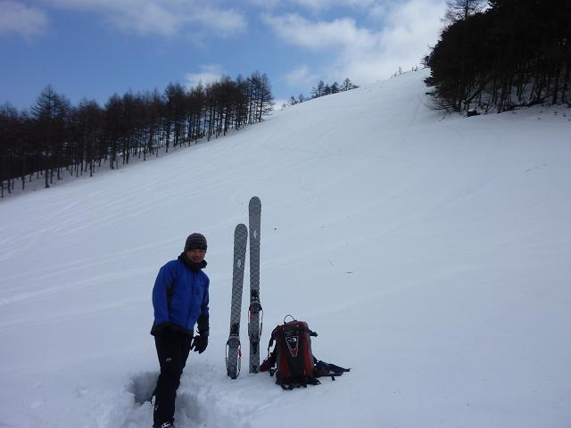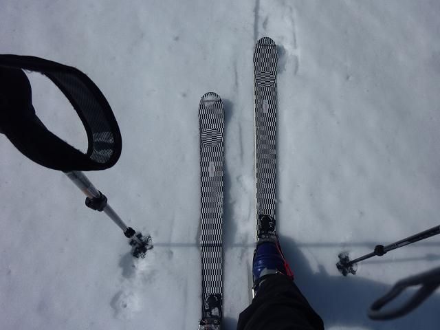 スキー場跡地は、スノーモービルの轍でズタズタになっており、雪が緩んでくれば問題ないのですが、固い時は注意が必要でした。