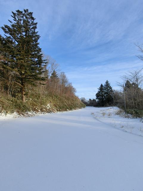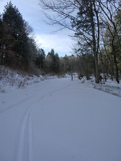 まだ林道の雪は軽く、ラッセルせずとも下れました。