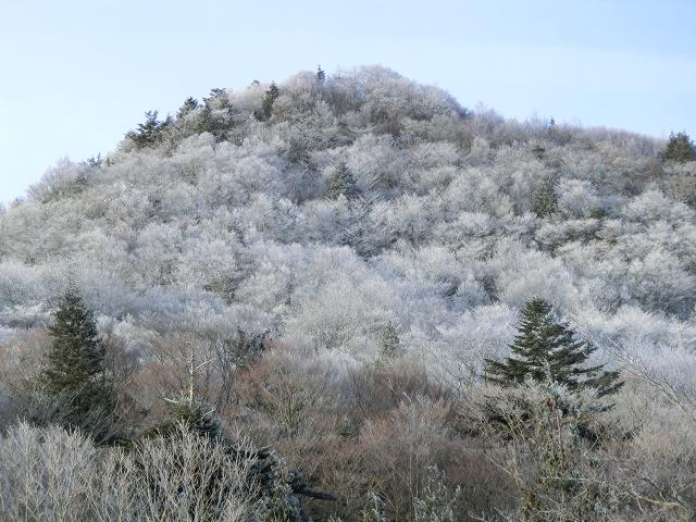 周囲の木々が霧氷で飾られ、静かで、歩いていてとても心地よかったです。(中写)