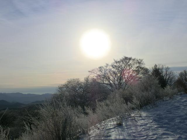 しかし、早朝の雪はサラサラで、辺りは霧氷で囲まれ、開けた景色に朝日が射し霧氷越しの南アルプスが輝きだし、とても素晴らしい景観を楽しむことが出来ました。