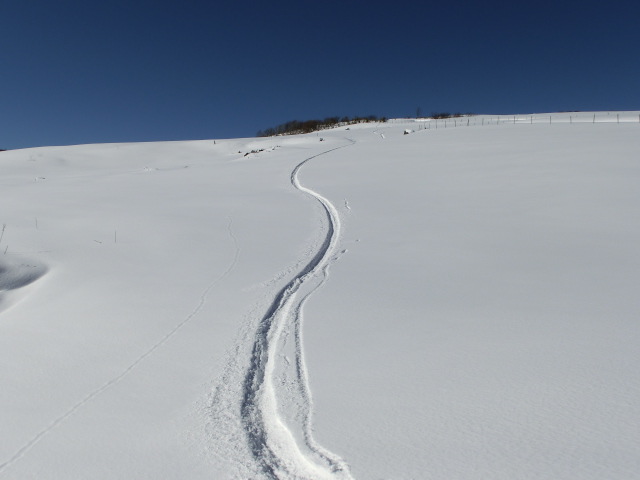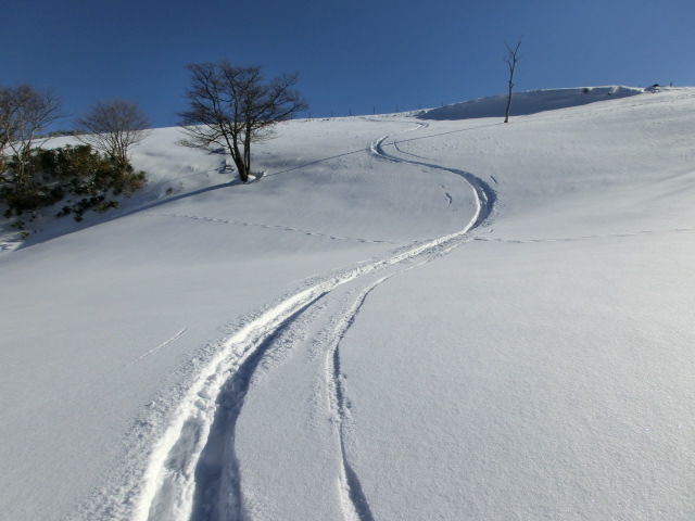 後は、往路に自分で造ったラッセル路を滑り、帰路に着きました。