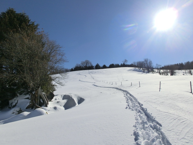 前回は雲が多くて分からなかったのですが、ここは素晴らしい眺望が堪能出来る場所だということが分かり、本当に気持ちよくスキー散策を楽しむことが出来ました。