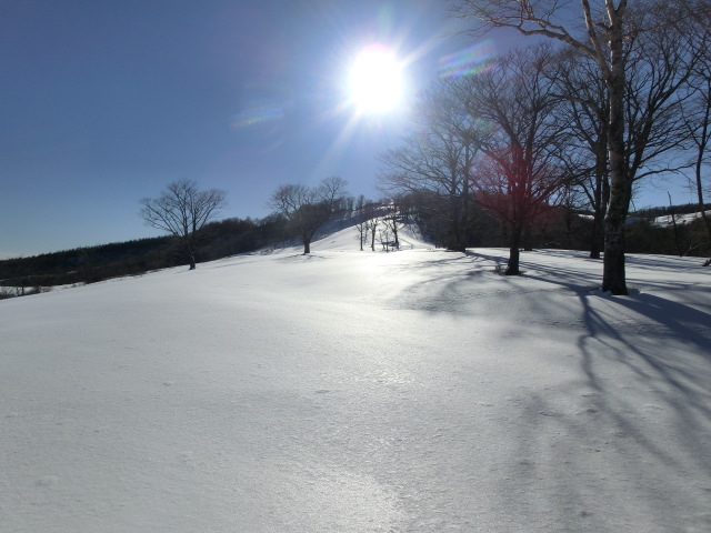 (日の出前の気温が低温だっただけに、日の出後の雪質の変化がよく分かりました・・・)