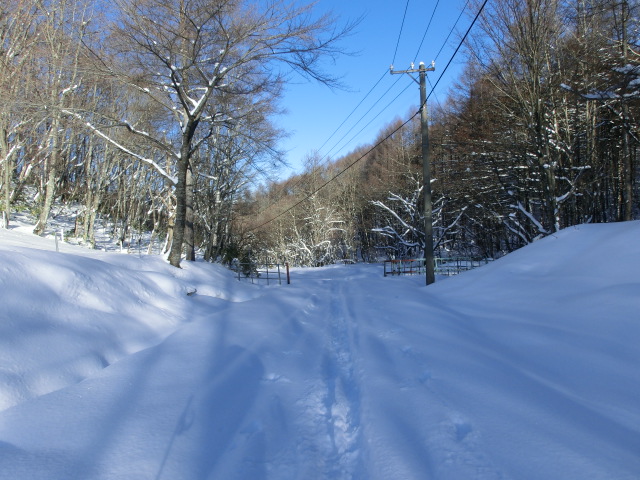 昨日のものであろう軽四輪の轍がフォレストビレッジまで続いており、利用出来ました。