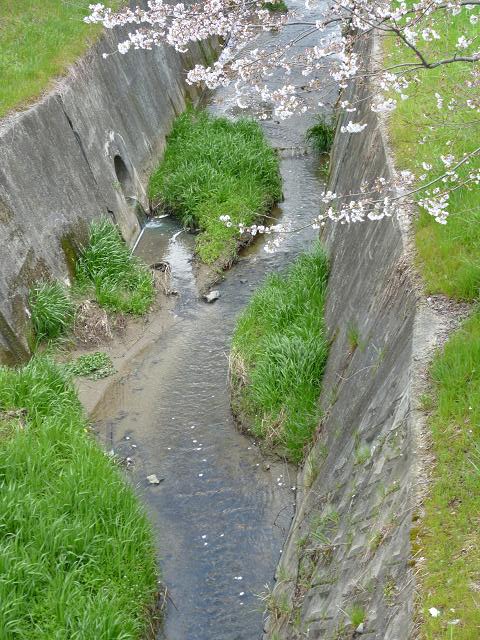 小川に桜の花びらが次々と流れ去る景色は風情がありますね。