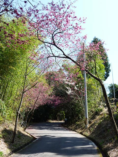 駐車場へ行く途中の寒緋桜が綺麗でした。