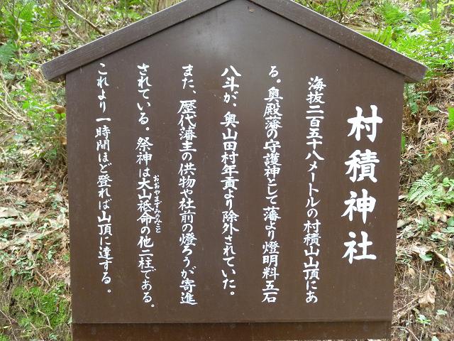 後ほど寄る、奥殿陣屋にあった村積神社の説明看板です。