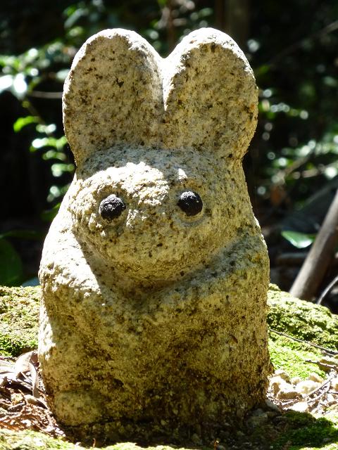かわいいウサギの石像があります。