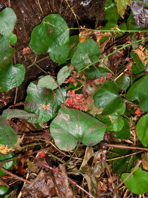 雨に濡れたアオキやフユイチゴの赤い実が、色鮮やかに映えていました。