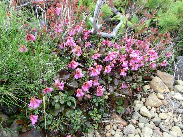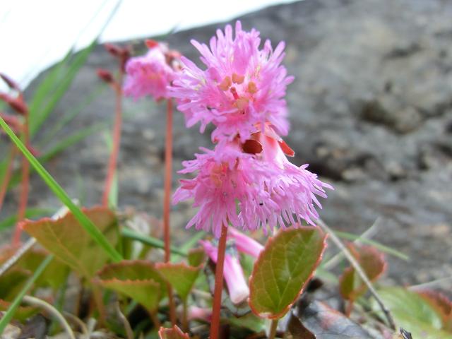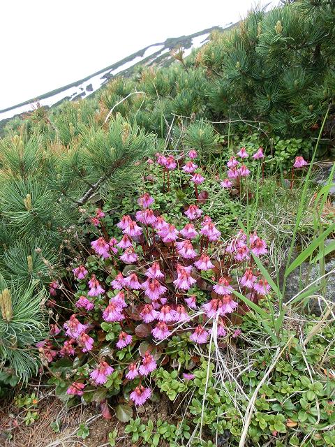 残雪とハイマツとイワカガミのコントラストが素敵でした。