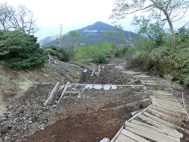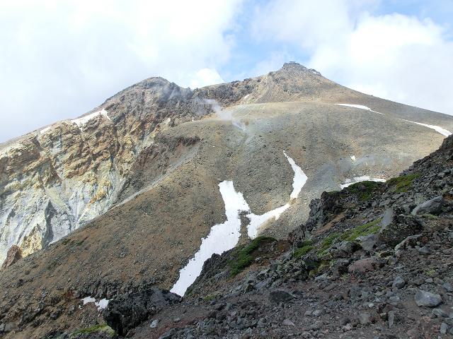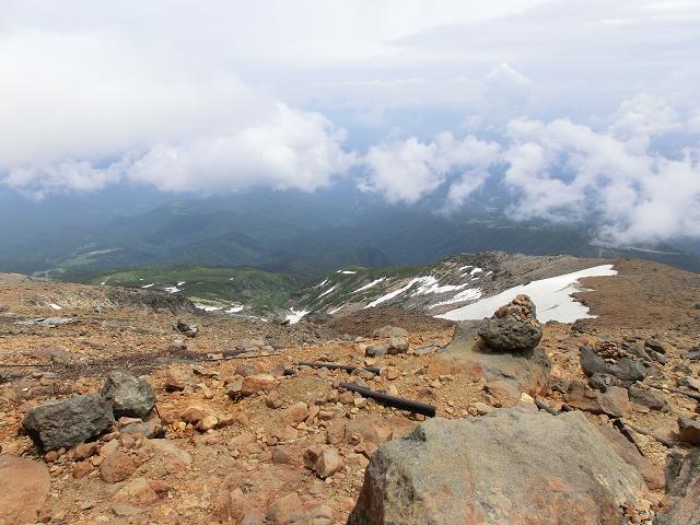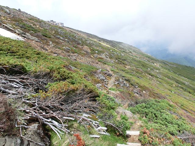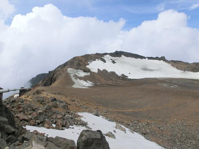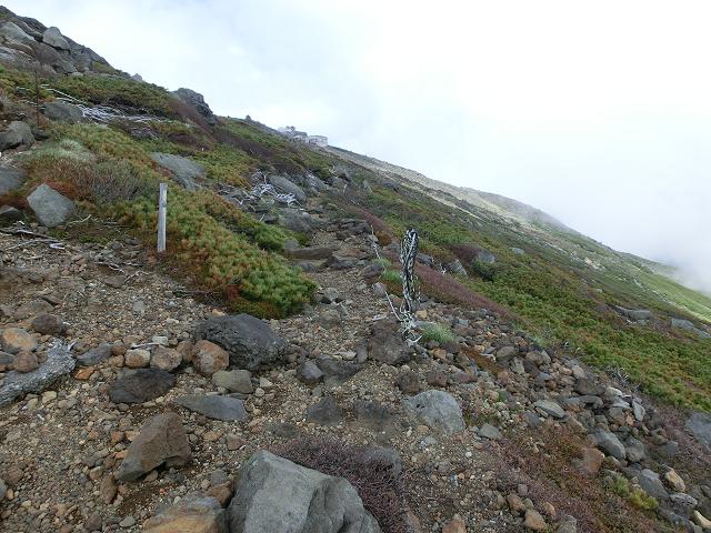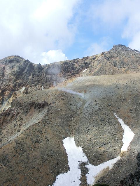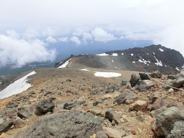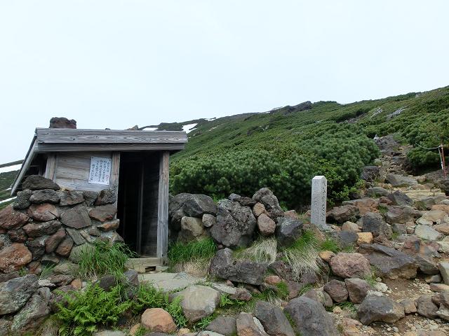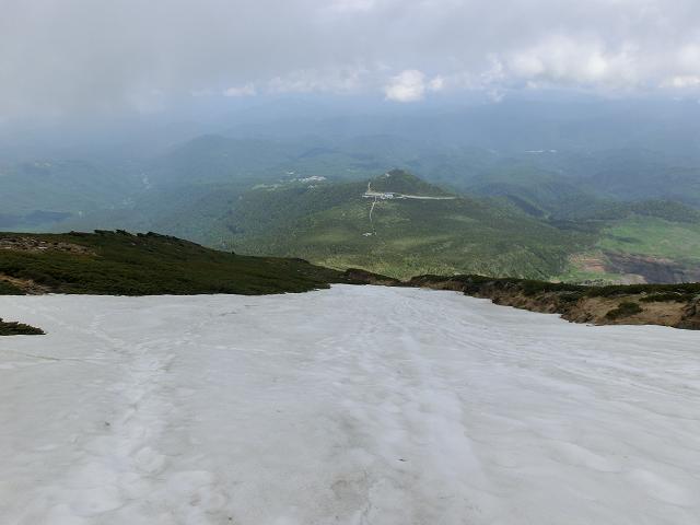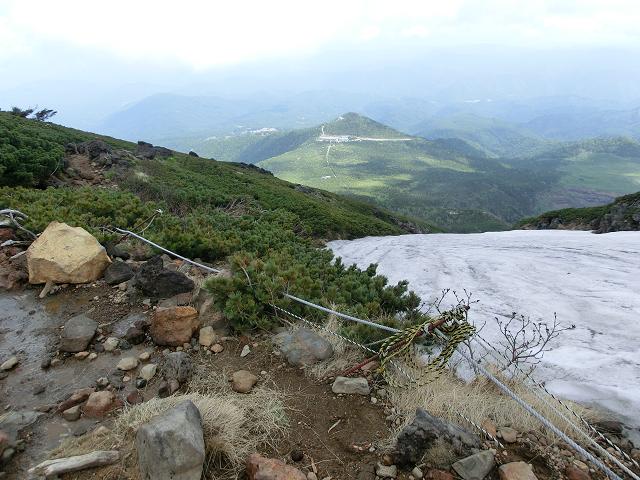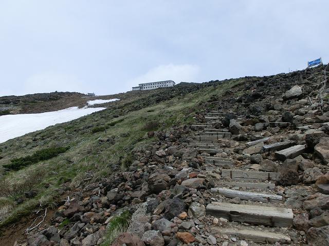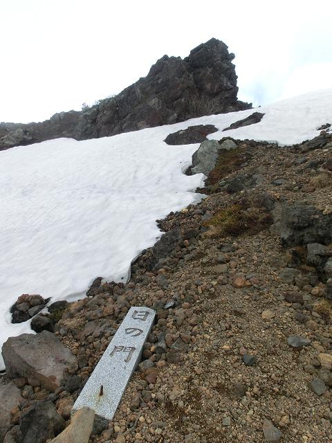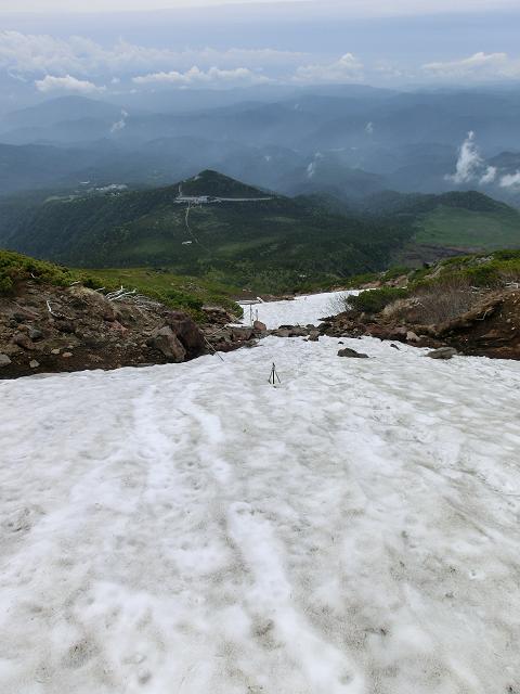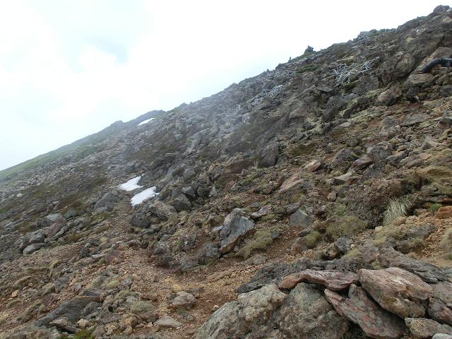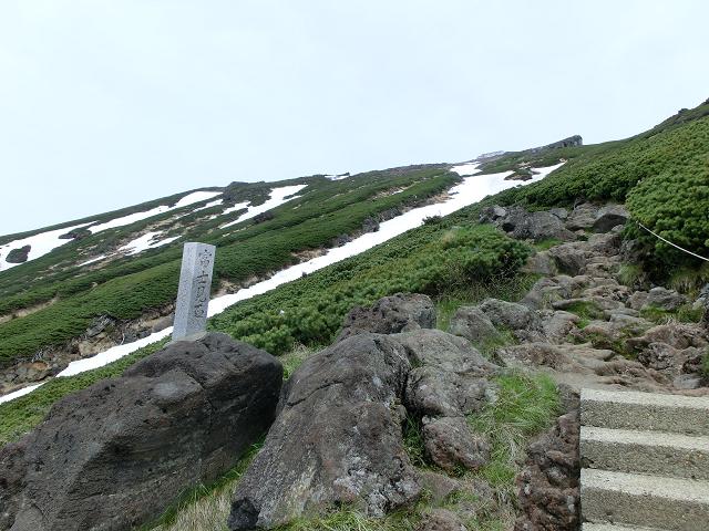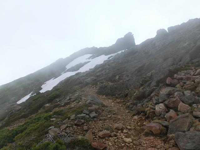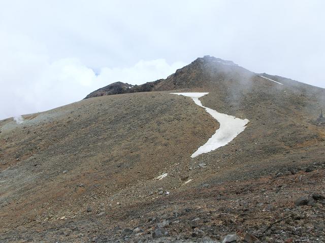 九合目です。 この上から、登山道は雪渓の中へ続くのでした。