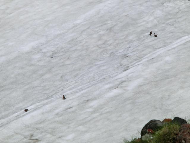 ※雪渓周辺では、イワヒバリが活発に歩いたり飛んだりしていました。