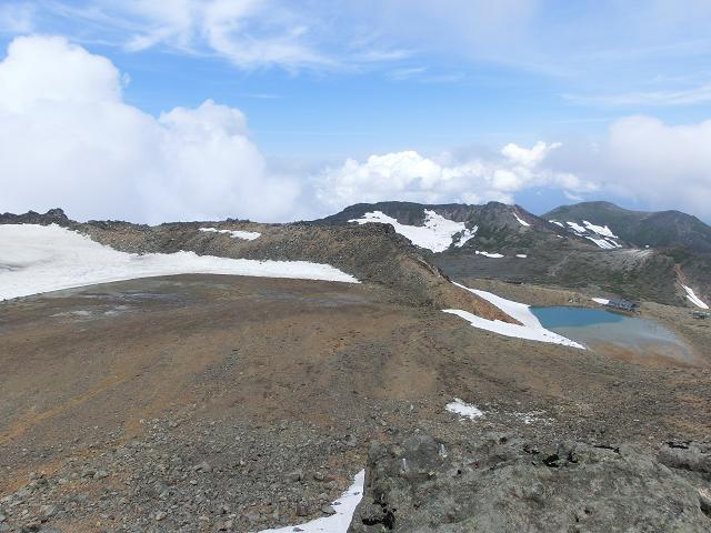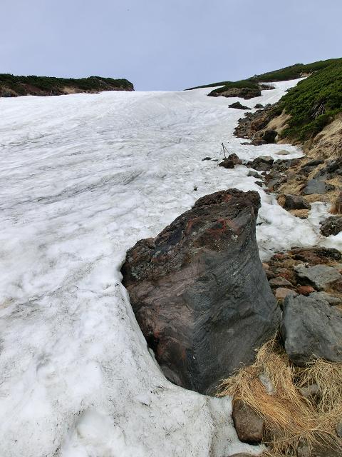 雪渓のくぼ地の左側を上がってくると、直接ここに着くことが出来ます。