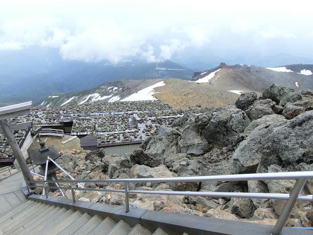 剣ヶ峰下で女性の歩荷人が休んでおられ、少しお話をさせていただいたのですが、大きな荷物を背負いながらケロッとした顔をされており、凄い人だな~と感心させられると同時に、自分の体力の無さが情けなくもありました。(^_^;)