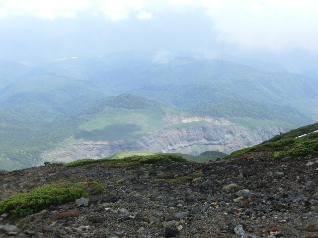 帰路は雪渓を横断せず、下から見上げた時の雪渓のくぼ地左側を下り、九合目のスグ上に進みました。
