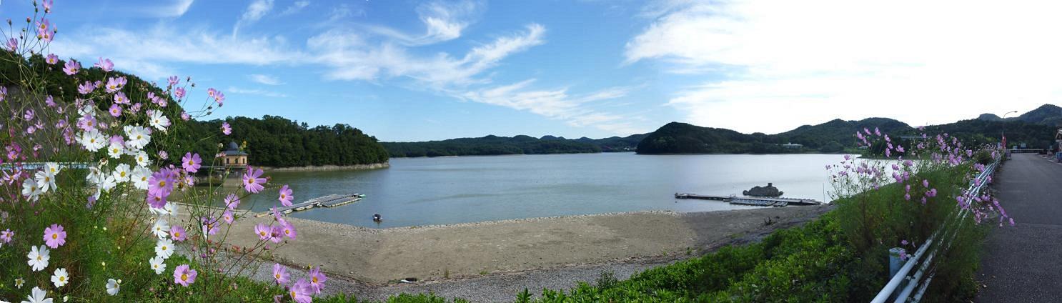 バス亭から坂を少し下ると、入鹿池が見えてきました。