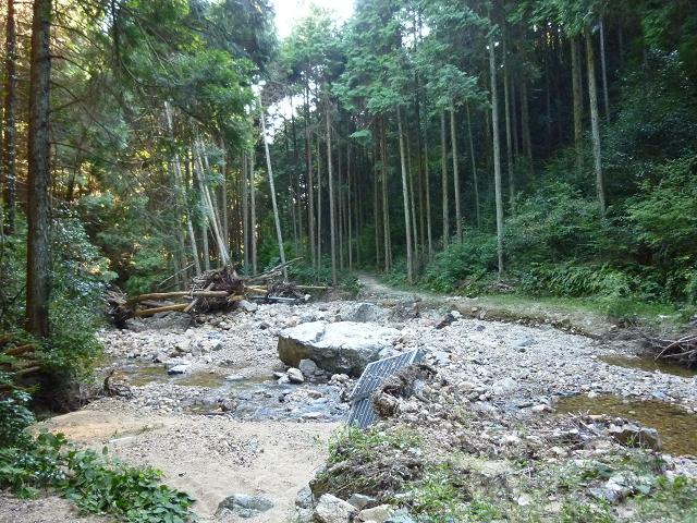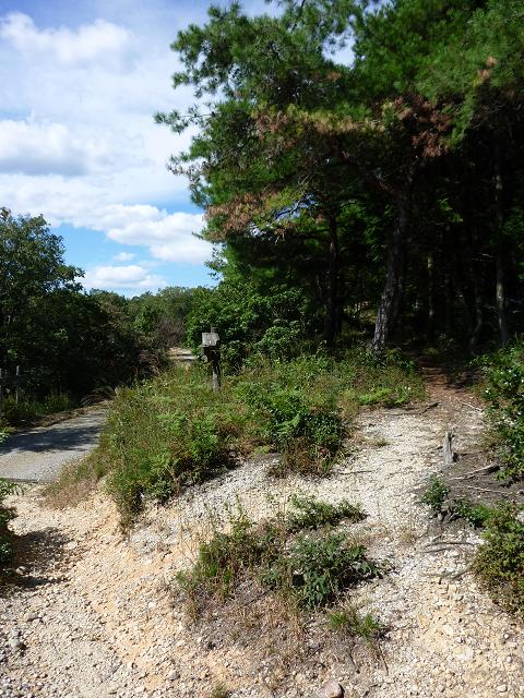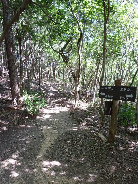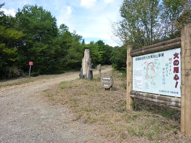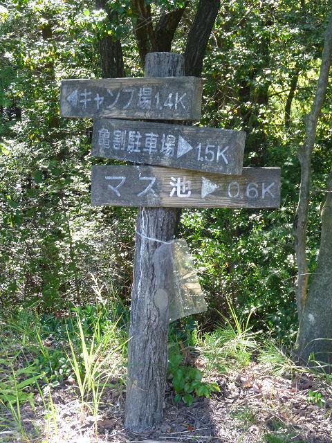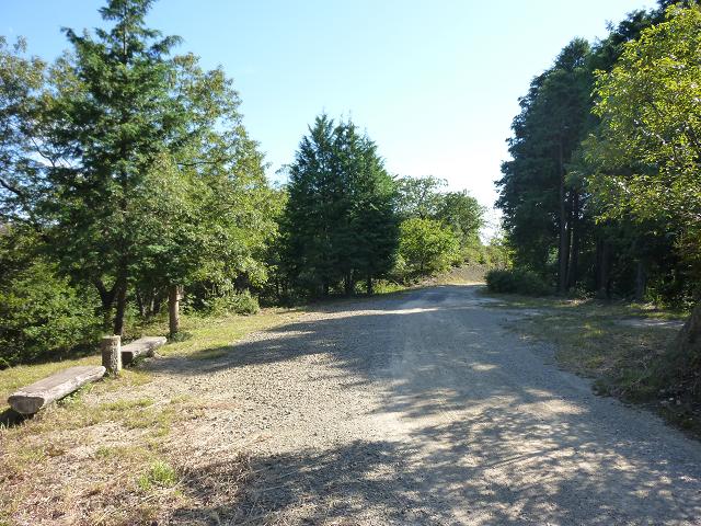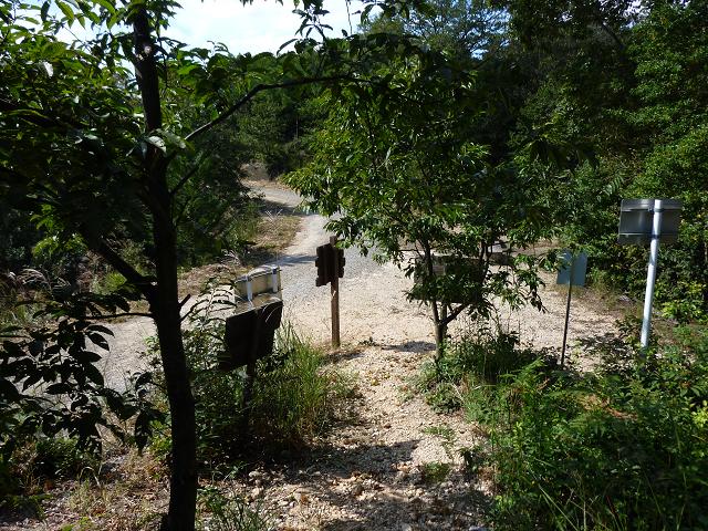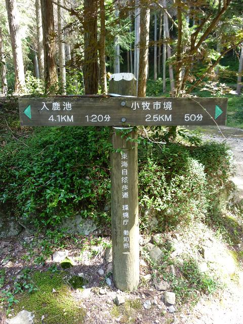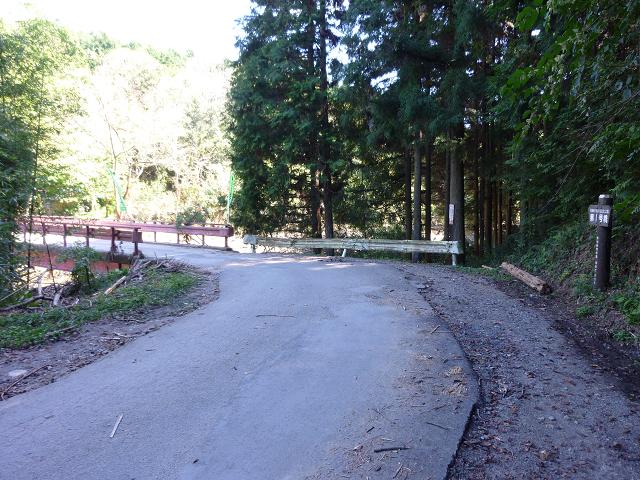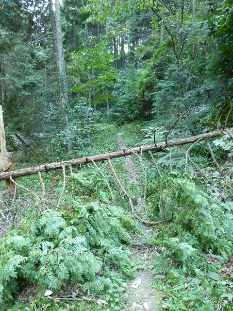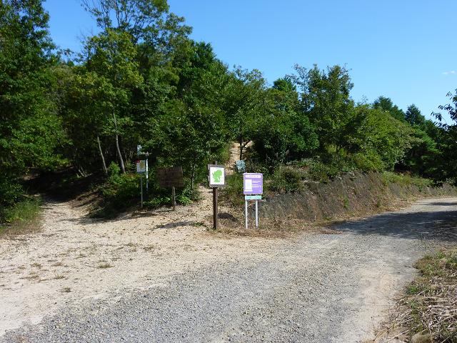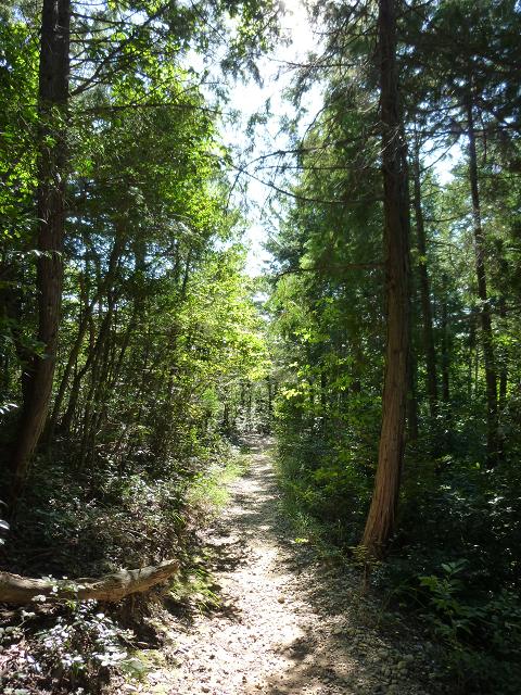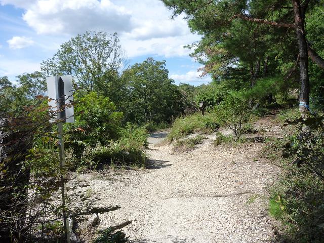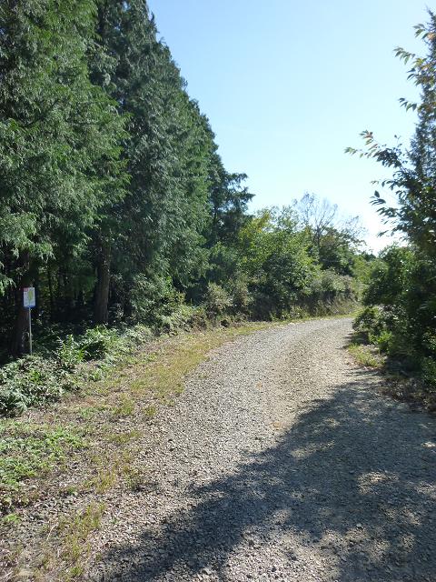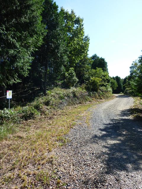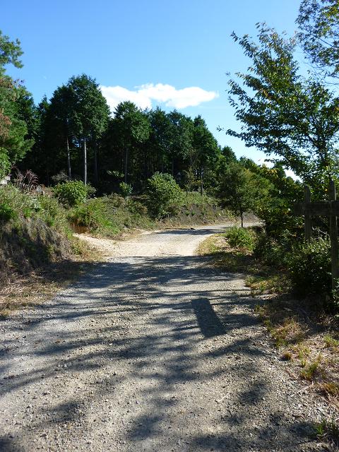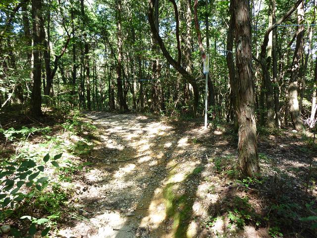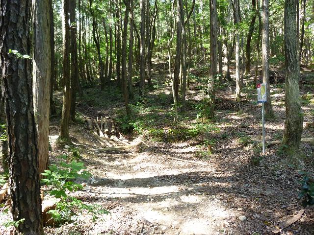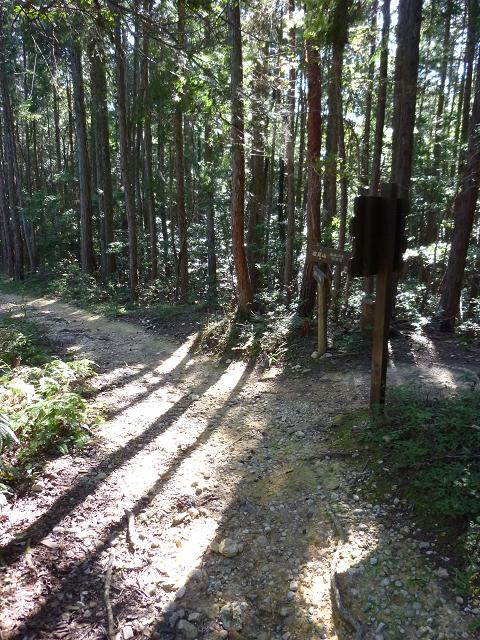 林道からトレイルに入るために、道標に従い右の道を選択しました。