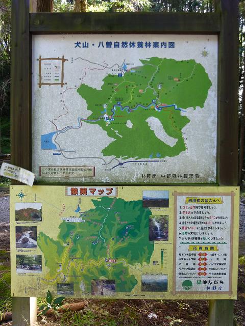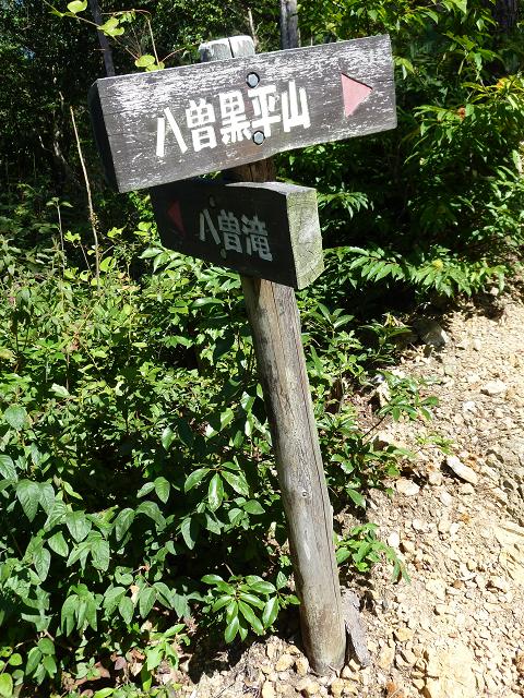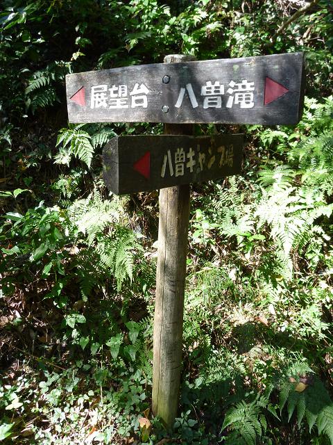 左を選択すれば八曽滝へ通じ、右を選択すれば八曽山頂へ通じます。