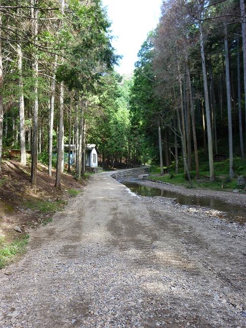 柵の脇を通り、八曽キャンプ場へ進みます。