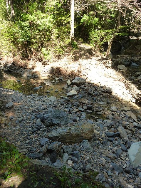 この様に小川を横切る箇所が何箇所も出てきますが、いずれも石の上を歩いて渡れる程度で、楽しかったです。